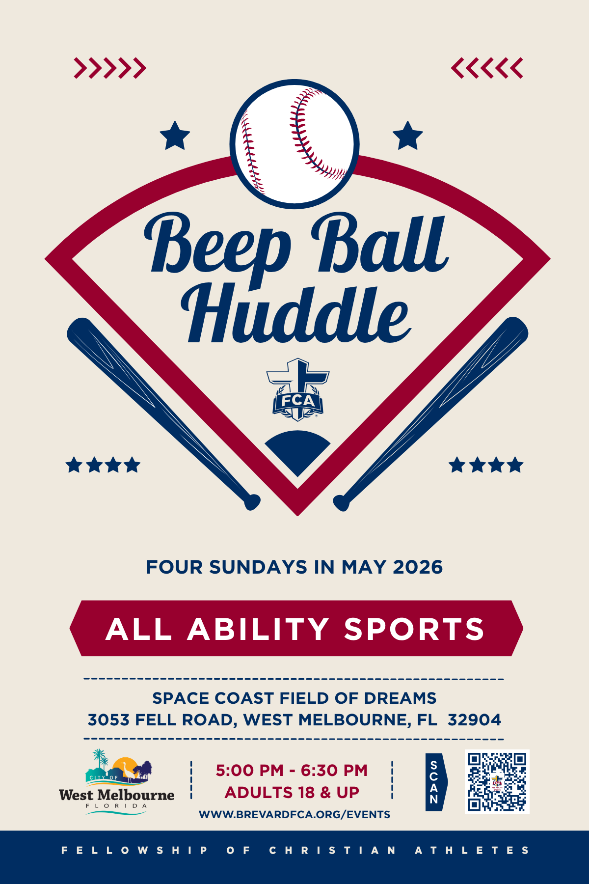 Register Here!Brevard FCA All Ability Sports is excited to announce an Adult Beep Ball Huddle coming in May 2026!