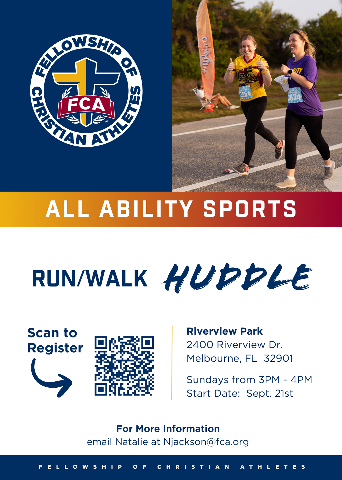 Step 1- Contact Natalie at njackson@fca.org to join the Brevard FCA All-Abilities Run Team.